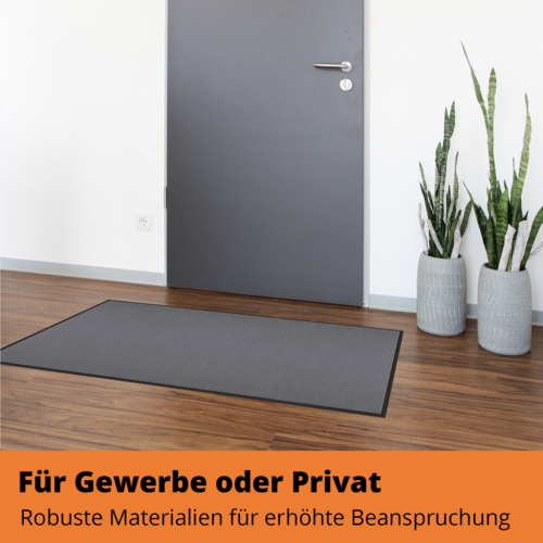 Diese stilvolle Schmutzfangmatte in modernem Uni-Design ist der ideale Begleiter für Ihren Flur oder Ihre Diele. Sie sorgt zuverlässig für einen sauberen Eingangsbereich und schützt Ihren Boden vor Schmutz und Feuchtigkeit. Dank des robusten Polyamid-Materials (PA) und der rutschhemmenden Gummi-Rückseite bleibt die Matte sicher an ihrem Platz – auch bei intensiver Nutzung. Die Matte ist besonders pflegeleicht und kann problemlos gewaschen werden. Sie eignet sich hervorragend für den Einsatz auf Fußbodenheizungen und bietet dank ihrer Trittschalldämmung ein angenehmes Gehen. Die schlichte anthrazitfarbene Oberfläche fügt sich harmonisch in jedes Raumkonzept ein.
