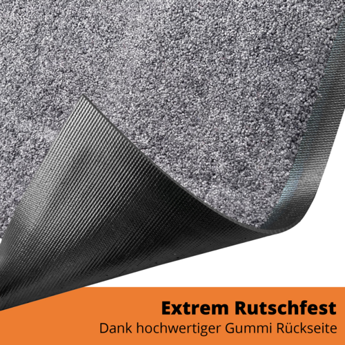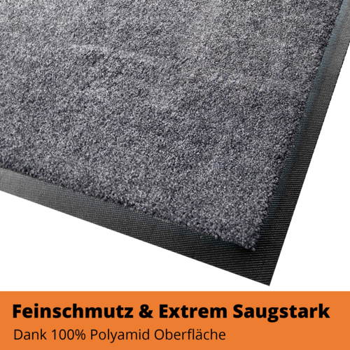 Waschechte Fußmatte für Profis. Rutschfest dank Gummi Rückseite. Besonders Feuchtigkeits- und Schmutzabweisende dank 100% Polyamid Oberfläche.