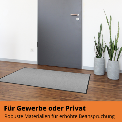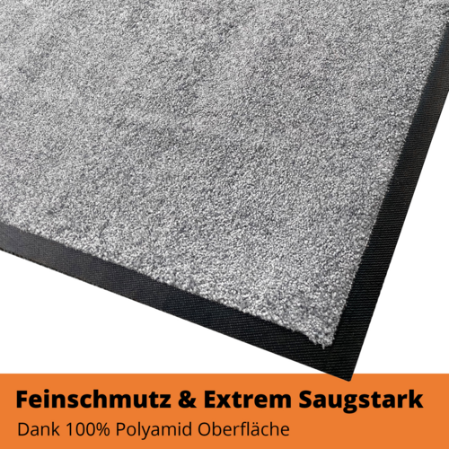 Waschechte Fußmatte für Profis. Rutschfest dank Gummi Rückseite. Besonders Feuchtigkeits- und Schmutzabweisende dank 100% Polyamid Oberfläche.